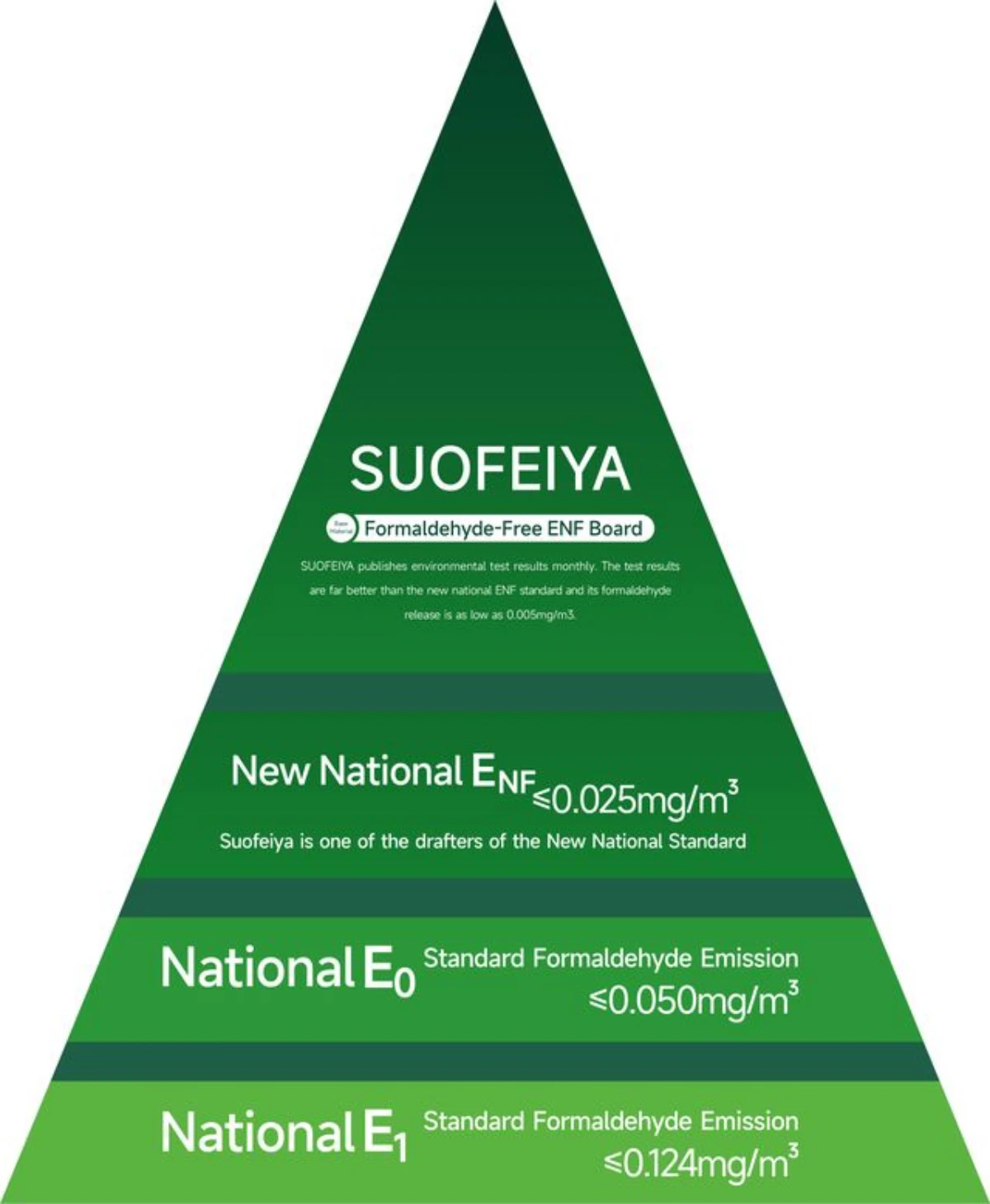 มาตรฐานไม้แต่ละระดับถูกกำหนดจากปริมาณการปล่อยสารฟอร์มาลดีไฮด์ โดยมีรายละเอียดดังนี้